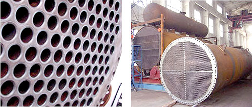 | 我廠生產(chǎn)的列管式冷凝器,按材質(zhì)分為碳鋼列管式冷凝器,不銹鋼列管式冷凝器和碳鋼與不銹鋼混合列管式冷凝三種,按形式分為固定管板式、浮頭式、U型管式換熱器,按結(jié)構(gòu)分為單管程、雙管程和多管程,傳熱面積0.5-1000m2,可根據(jù)用戶需要定制。 |