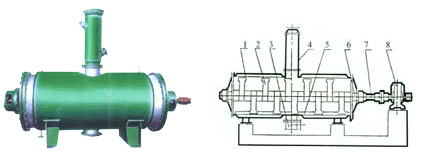 | 結(jié)構(gòu): 真空耙式干燥機(jī)的主要部件 1.殼體 2.耙齒 3.出料裝置 4.加料裝置 5.粉碎棒 6.密封裝置 7.攪拌軸 8.傳動(dòng)裝置